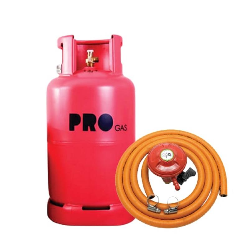 complete Pro Gas 13kg set typically includes the filled cylinder, a regulator, and a hosepipe, with prices generally ranging from KSh 7,000 to KSh 9,500 in Kenya. Some retailers also offer bundled options that include a table-top cooker.